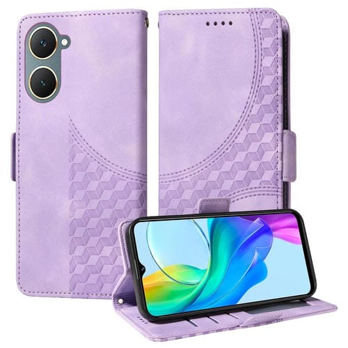 Para Vivo Y03 4G / Y18 / Y18E Funda para Teléfono de Cuero Estrellado con Rombos En Relieve (Púrpura)