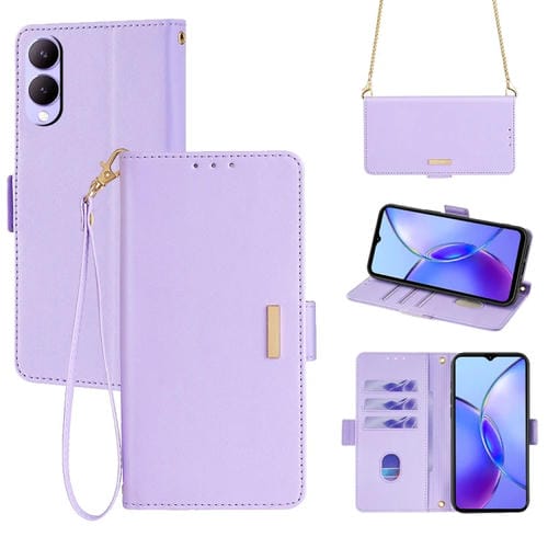 Para Vivo Y17S 4G Funda de Cuero para Teléfono con Cadena Cruzada (Púrpura)
