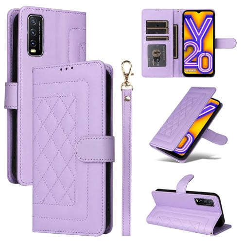 Para Vivo Y20 / Y20I Funda para Teléfono con Tapa de Cuero Diamond Lattice (Púrpura Claro)
