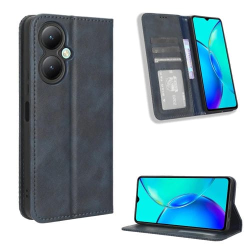 Para Vivo Y35 + 5G Hebilla Magnética Textura Retro Funda de Cuero para Teléfono (Azul)