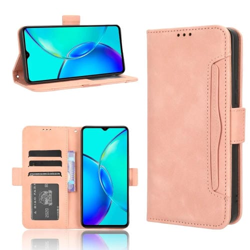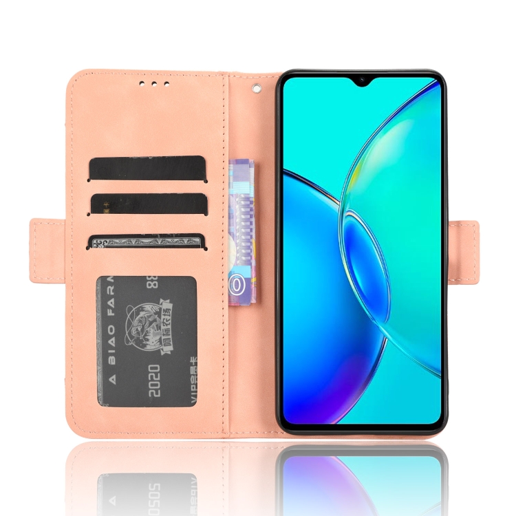 Para Vivo Y35 + 5G Skin Feel Becerro Textura Ranuras para Tarjetas Funda de Cuero para Teléfono (Rosa)