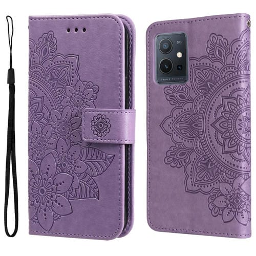 Para Vivo Y55 5G / Y75 5G / T1 5G 7-Petal Flores Patrón de Relieve Funda de Cuero Horizontal Flip Funda (Púrpura Claro)