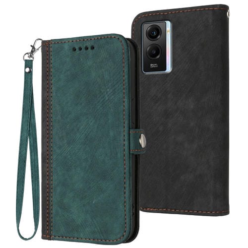 Para Vivo Y55S 2023 5G / Y55 5G Funda de Cuero para Teléfono con Hebilla Lateral Global y Correa de Mano con Doble Pliegue (Verde Oscuro)