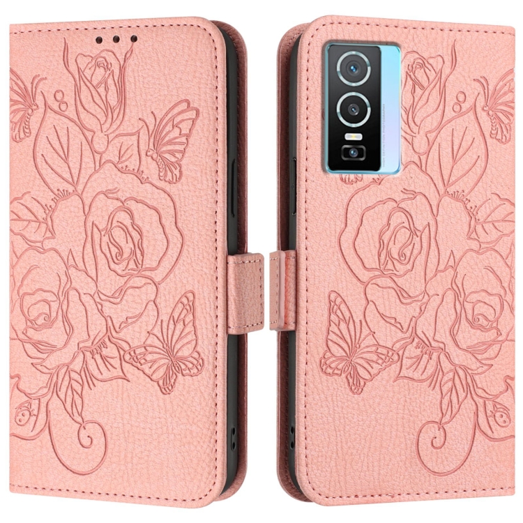 Para Vivo Y76 5G Funda de Teléfono de Cuero Antirrobo Rfid con Relieve Rosa (Rosa)