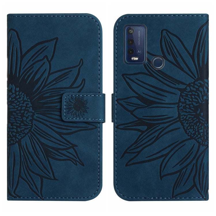 Funda Flip de Cuero para Wiko Power U30 Skin Feel con Cordón y Diseño Sun Flower (Azul Tinta)