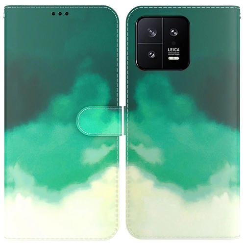 Para Xiaomi 13 5G Funda de Teléfono con Tapa de Cuero con Patrón de Acuarela (Verde Cian)