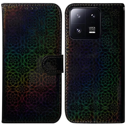 Para Xiaomi 13 Pro 5G Caja de Teléfono de Cuero con Hebilla Magnética Colorida (Negro)
