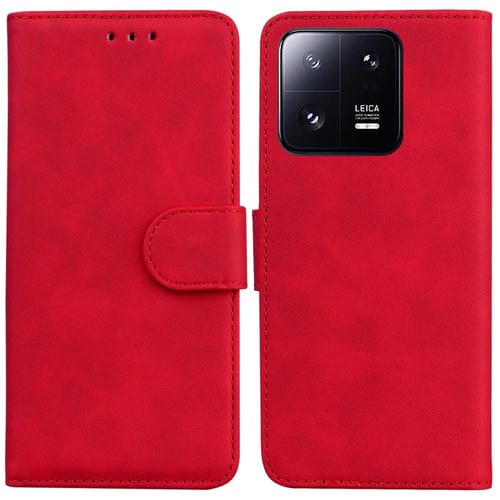 Para Xiaomi 13 Pro 5G Skin Feel Pure Color Flip Funda de Cuero para Teléfono (Rojo)