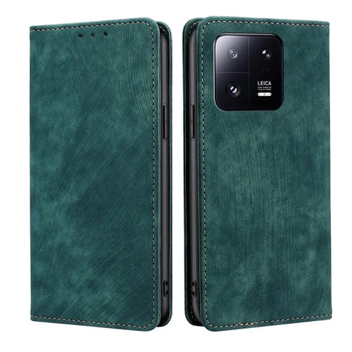 Para Xiaomi 13 Pro Rfid Funda de Teléfono de Cuero Magnético con Cepillo Antirrobo (Verde)
