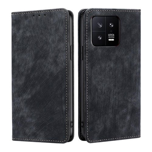 Para Xiaomi 13 Rfid Funda de Teléfono de Cuero Magnético con Cepillo Antirrobo (Negro)
