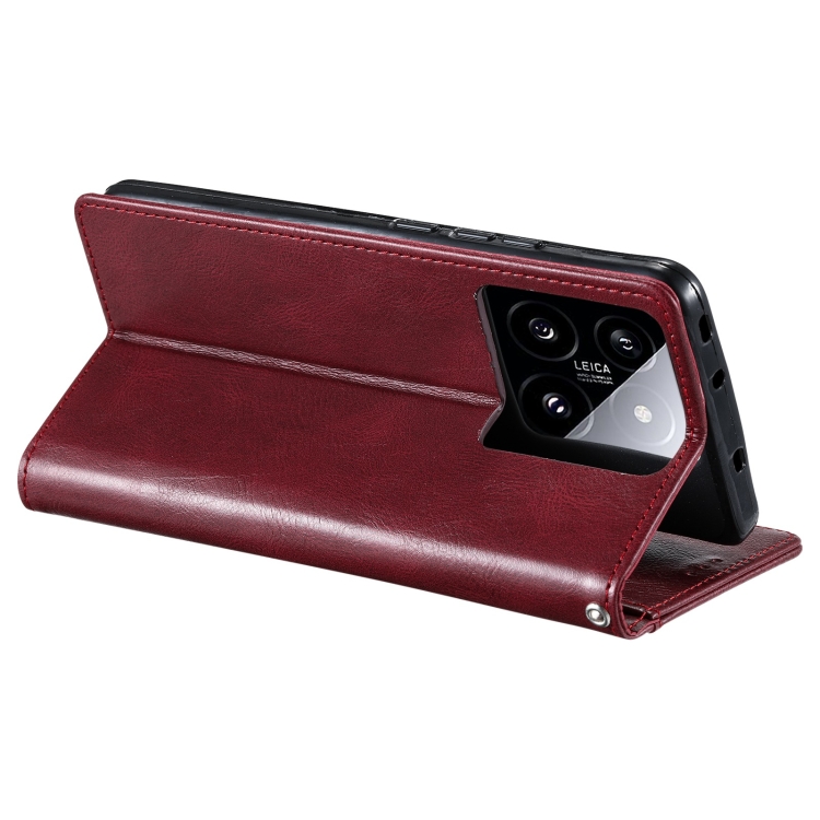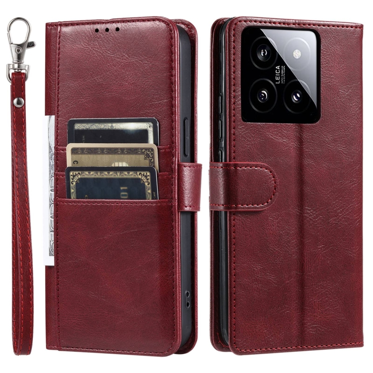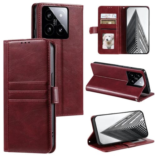Para Xiaomi 14 Funda De Cuero Para Teléfono Con Billetera Simple Para 6 Tarjetas (Rojo Vino)