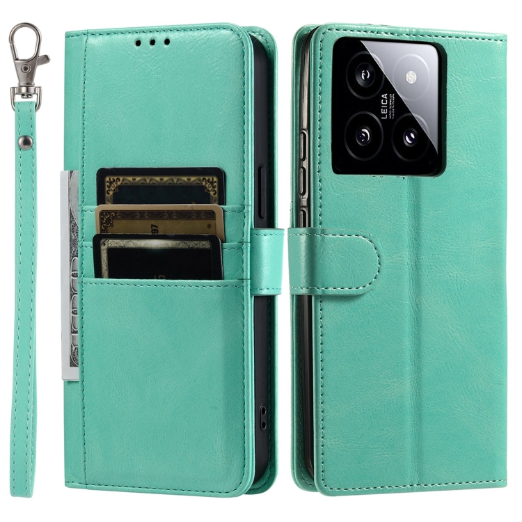 Para Xiaomi 14 Funda De Cuero Para Teléfono Con Billetera Simple Para 6 Tarjetas (Verde)