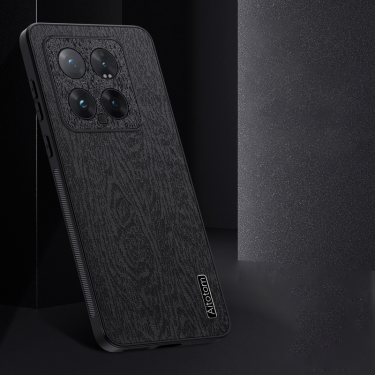 Para Xiaomi 14 Funda De Teléfono A Prueba De Golpes De Cuero Con Corteza De Árbol (Negro)