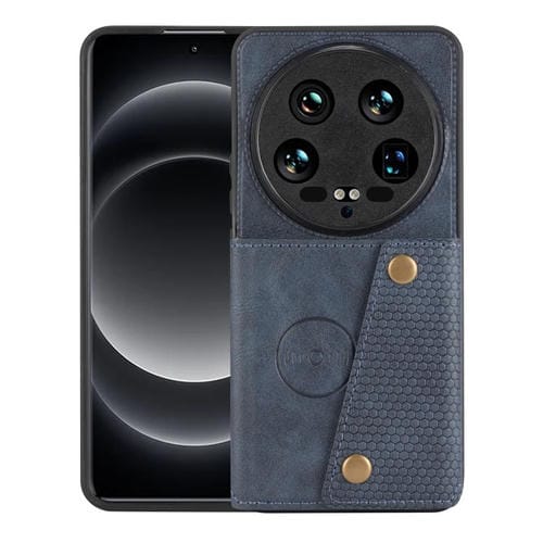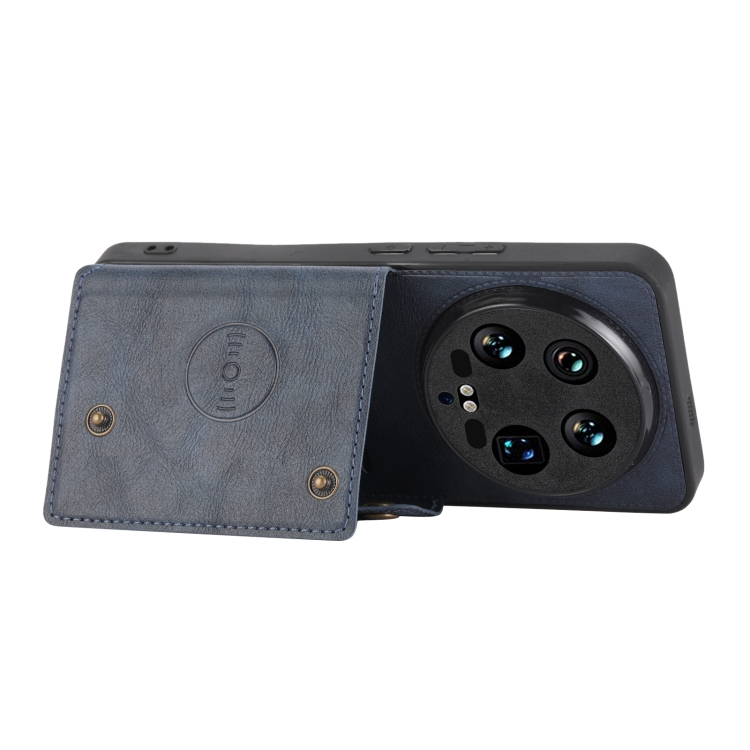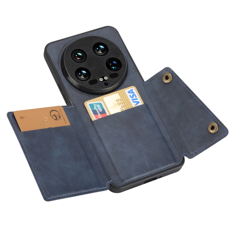 Para Xiaomi 14 Funda Magnética Para Teléfono Con Ranuras Para Tarjetas Con Doble Hebilla (Azul)