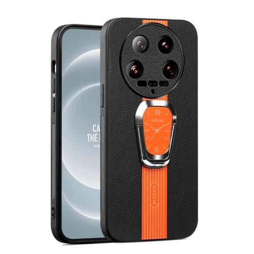 Para Xiaomi 14 Funda Para Teléfono Con Parte Trasera De Cuero Litchi Ultra Magnética Con Soporte (Naranja)