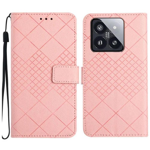 Para Xiaomi 14 Pro Funda De Teléfono De Cuero Con Textura De Rejilla Rómbica (Rosa)