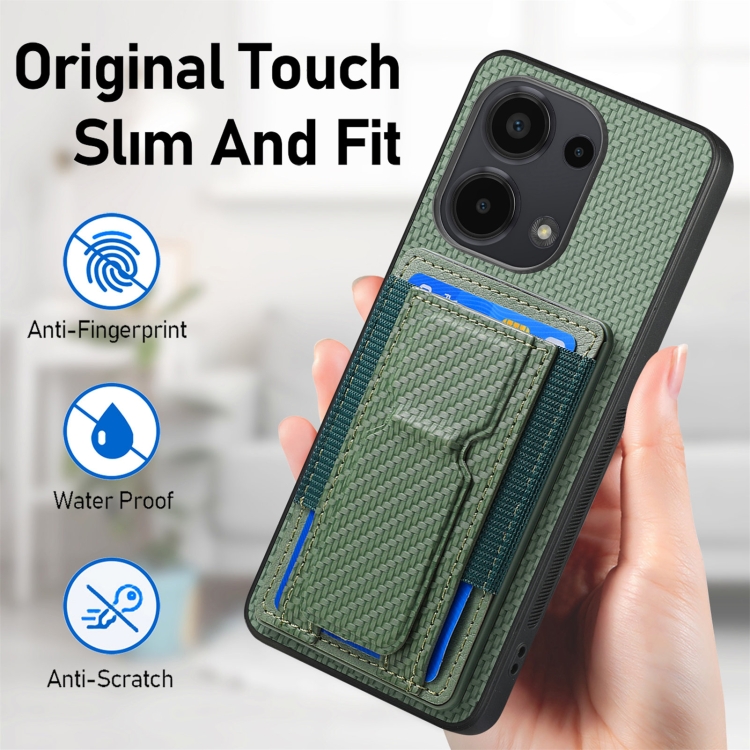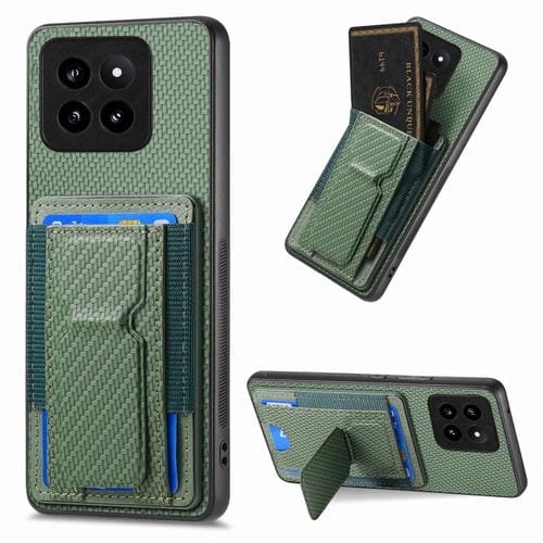 Para Xiaomi 14 Pro Funda Plegable Para Teléfono Con Bolsa Para Tarjeta Elástica Con Soporte Plegable De Fibra De Carbono (Verde)