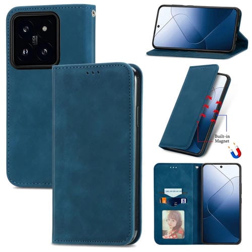 Para Xiaomi 14 Retro Skin Feel Funda De Teléfono De Cuero Con Tapa Magnética (Azul)