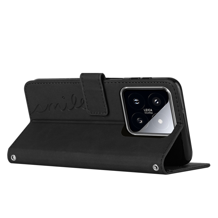 Para Xiaomi 14 Skin Feel Heart Funda De Cuero En Relieve Con Cordón Largo (Negro)