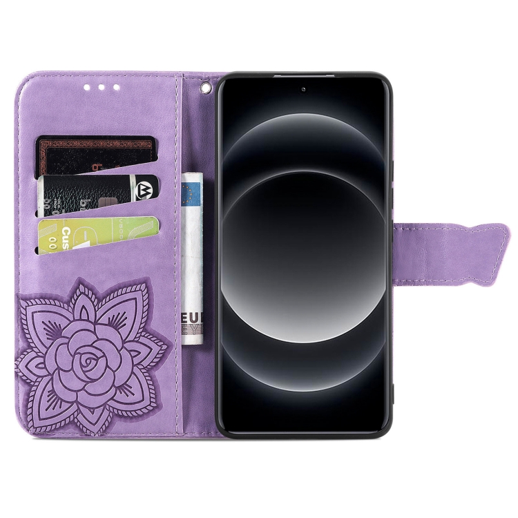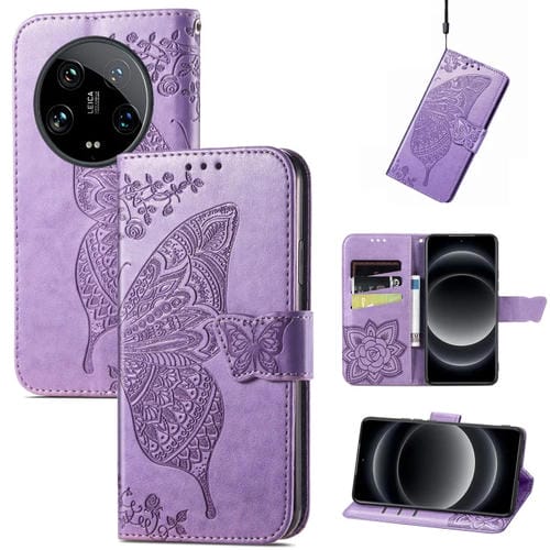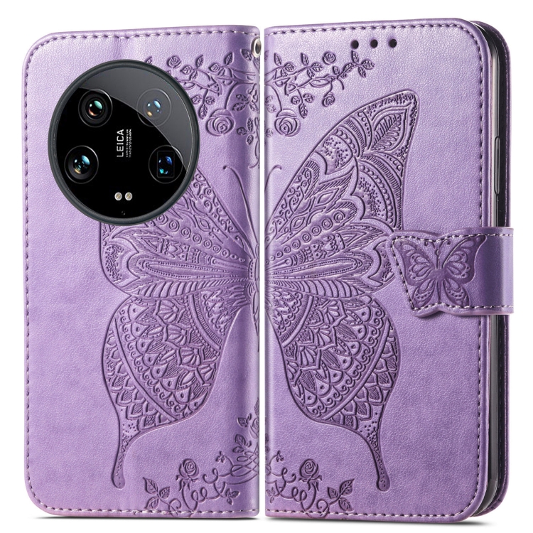 Para Xiaomi 14 Ultra Butterfly Love Flower Funda De Cuero Para Teléfono En Relieve (Púrpura)