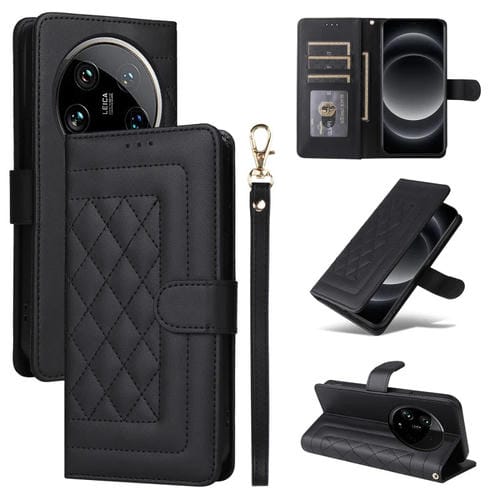 Para Xiaomi 14 Ultra Diamond Lattice Funda De Cuero Con Tapa Para Teléfono (Negro)