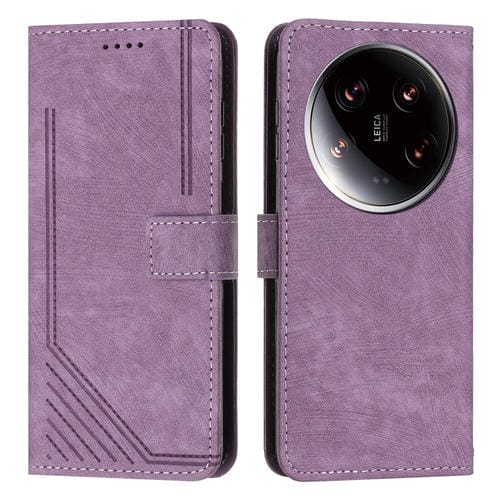 Para Xiaomi 14 Ultra Skin Feel Funda De Cuero Con Patrón De Rayas Y Cordón Largo (Púrpura)