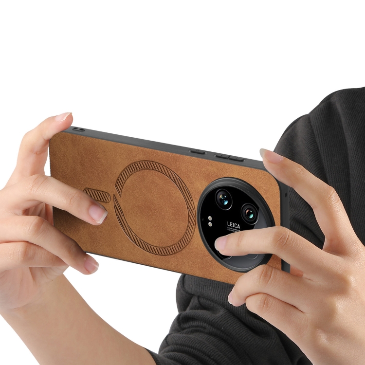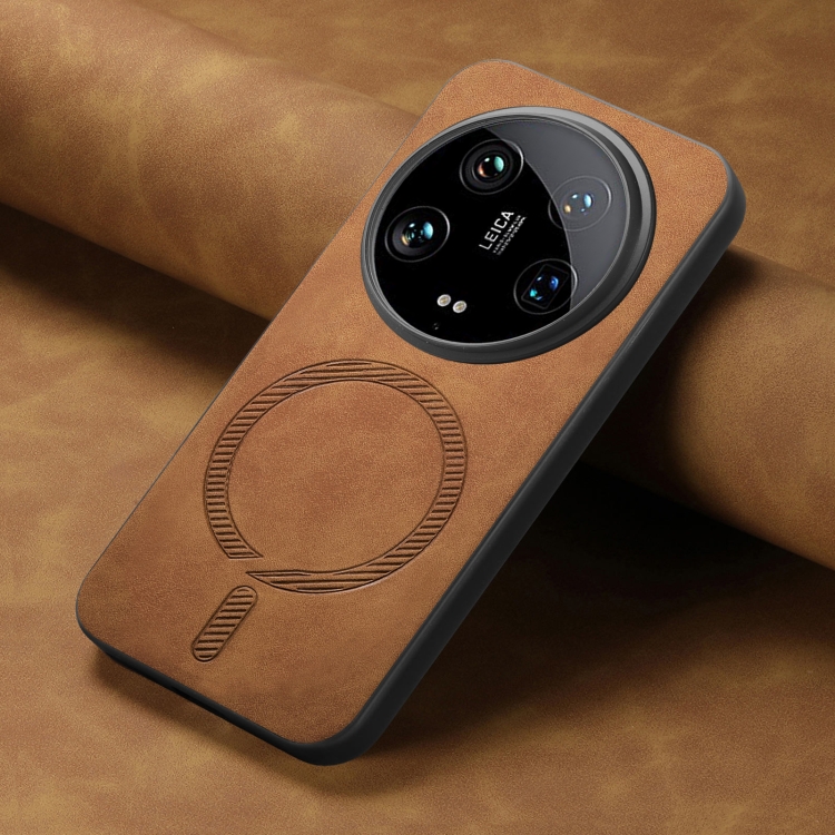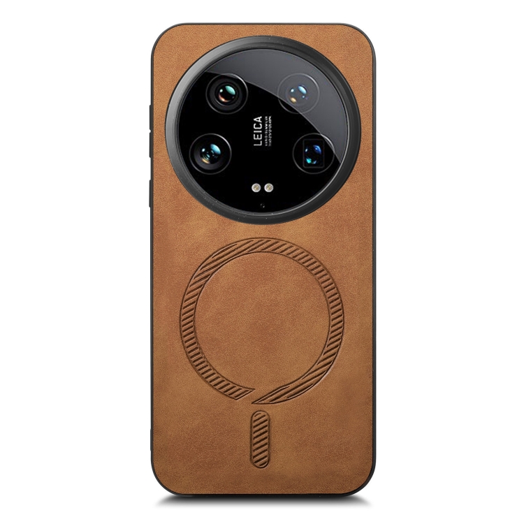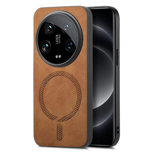 Para Xiaomi 14 Ultra Solid Color Retro Magsafe Pu Funda Para Teléfono Con Contraportada (Marrón)