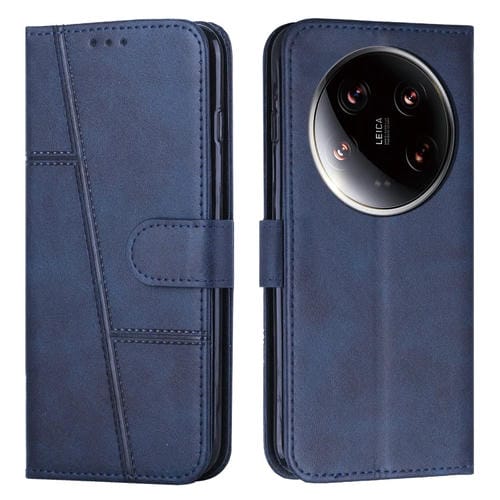 Para Xiaomi 14 Ultra Stitching Becerro Textura Hebilla Funda De Cuero Para Teléfono (Azul)