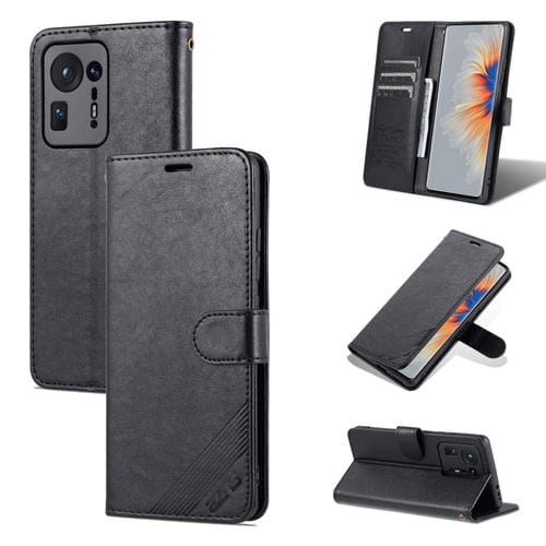 Para Xiaomi Mezcla 4 Azns Caja de Cuero Horizontal Flip Funda de Cuero con Soporte y Tragamonedas y Billetera (Negro)