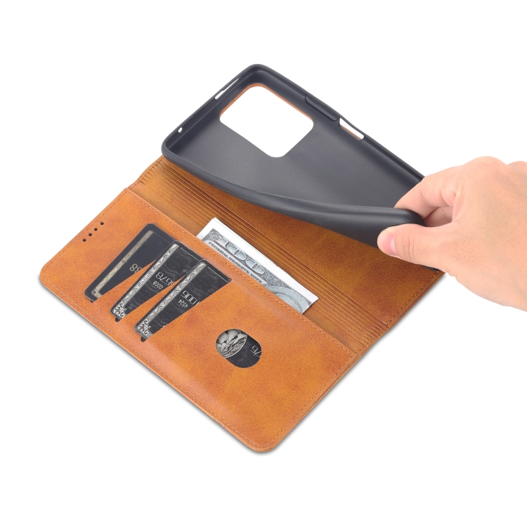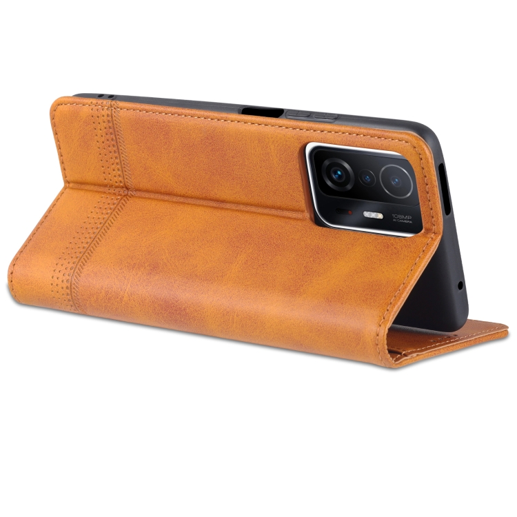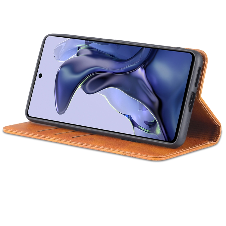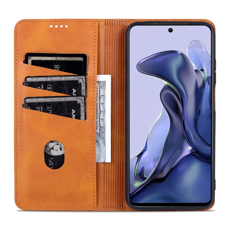 Para Xiaomi Mi 11T / 11T Pro Azns Magnético Texture Texture Horizontal Flip Funda de Cuero (Marrón Claro)