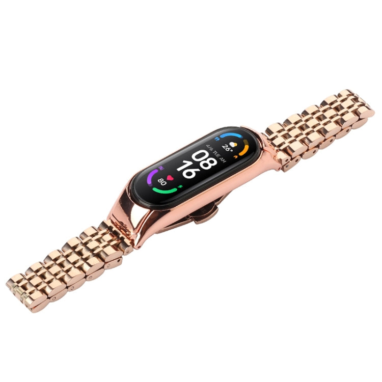 Para Xiaomi Mi Band 4/3 Band de reloj de acero inoxidable de siete cuentas (oro rosa)