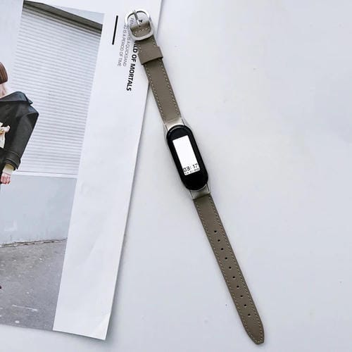 Correa de Reloj de Cuero Genuino para Xiaomi Mi Band 5 / 6 (Gris)