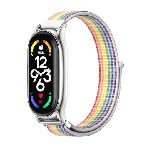 Banda de Reloj para Xiaomi Mi Band 7 y 7 NFC Mijobs nylon y acero inoxidable (Plata Colorida)
