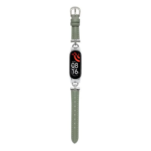 Correa para Xiaomi Mi Band 7 Acero en Forma de D con Correa de Cuero Genuino (Verde Plateado)