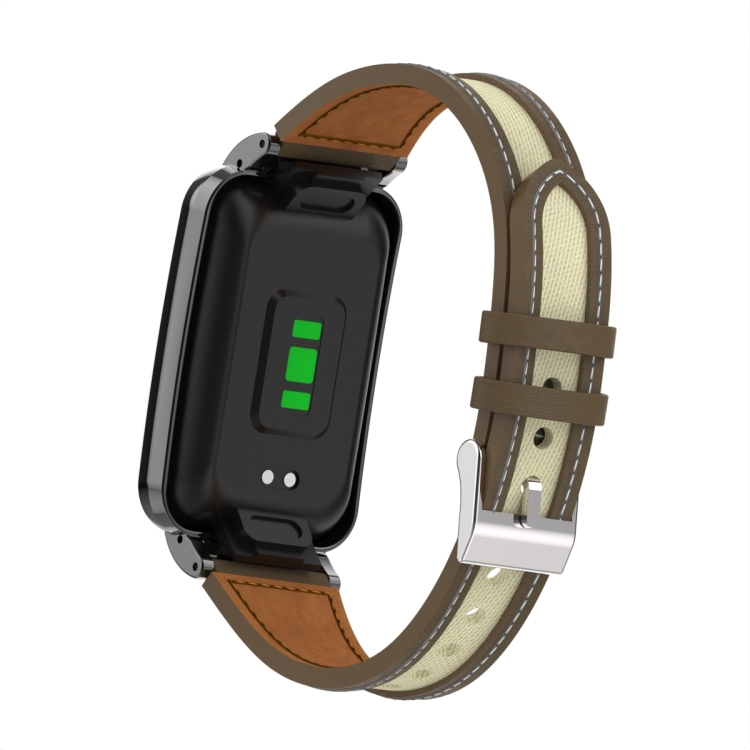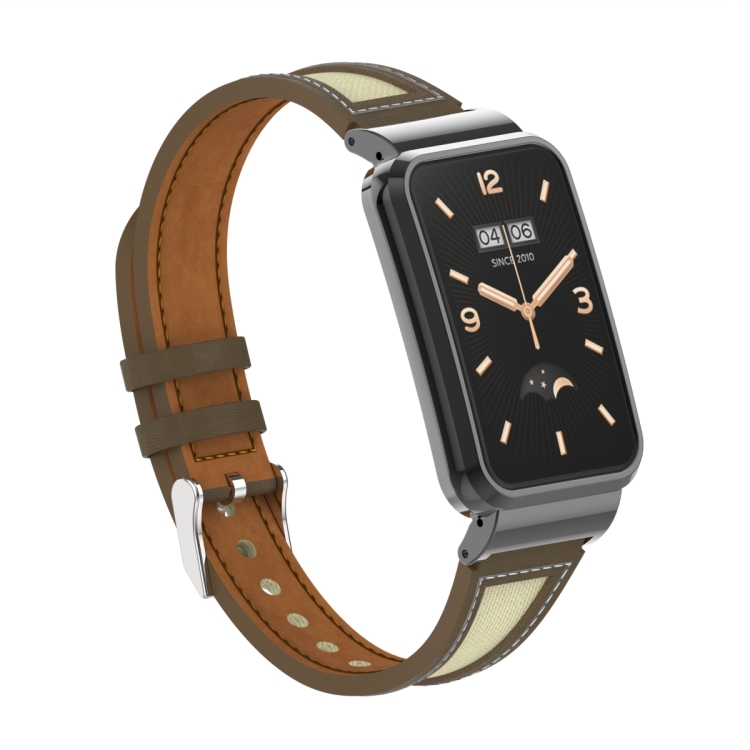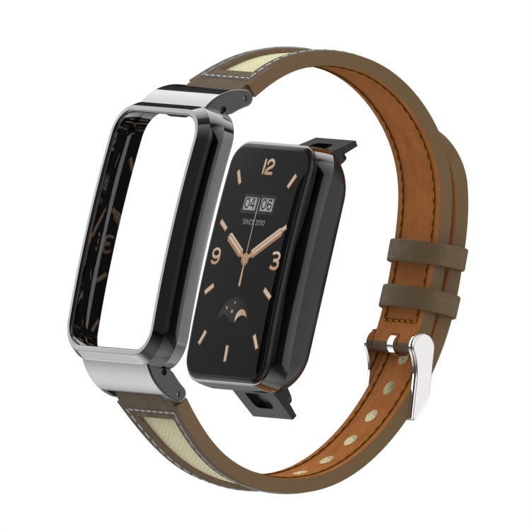 Banda de Reloj para Xiaomi Mi Band 7 Pro Marco de Metal Cuero Cintura Pequeña (Marrón)