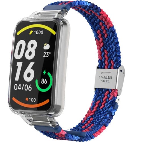 Correa de Reloj para Xiaomi Mi Band 7 Pro Integrada con Hebilla de Nailon Trenzado (Azul Rojo)