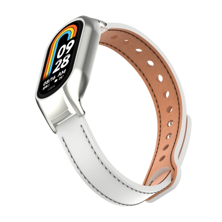 Caja de Metal integrada + Banda de Reloj de Cuero Microfibra para Xiaomi Mi Band 8 (Blanco)