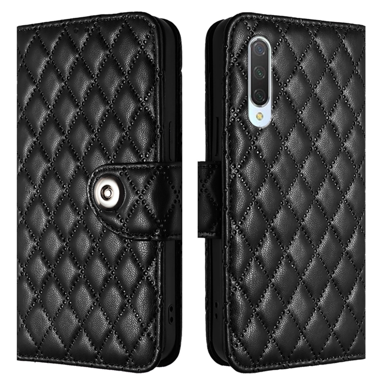 Para Xiaomi Mi Cc9 / Mi 9 Lite Funda para Teléfono con Tapa de Cuero con Textura Romboidal y Cordón (Negro)