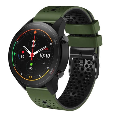 Banda de Reloj Xiaomi Mi Watch S1 Pro 22mm Silicona Dos Colores Perforada (Verde Militar + Negro)