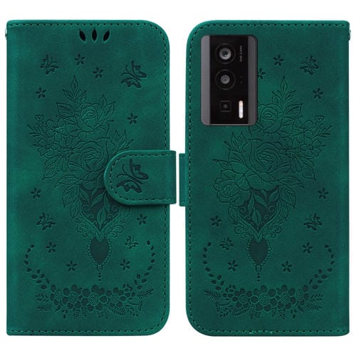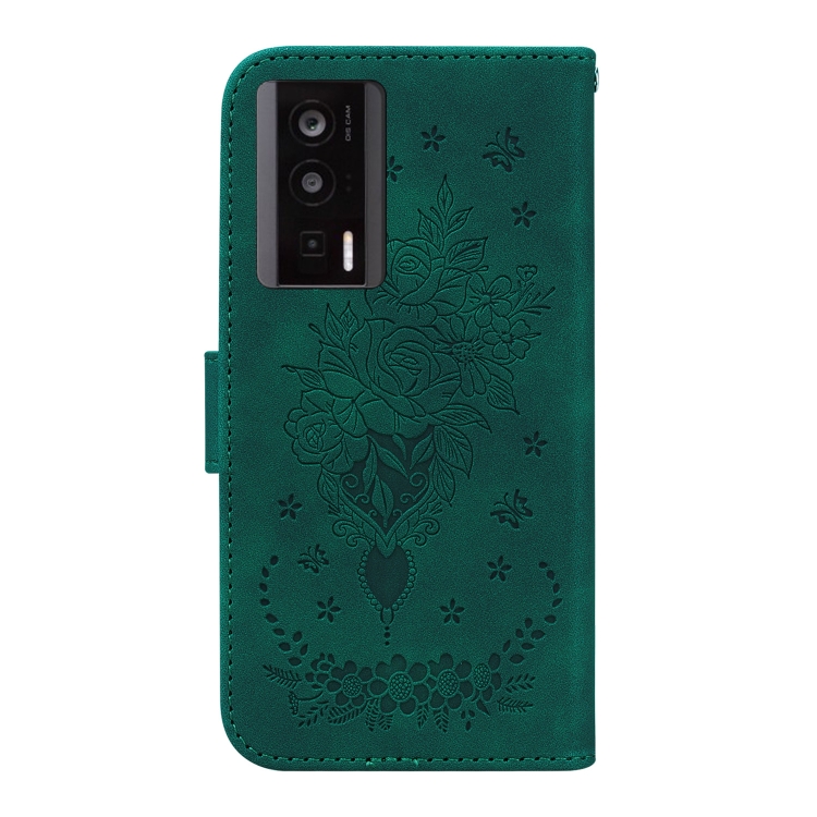Para Xiaomi Poco F5 Pro / Redmi K60 Butterfly Rose Estuche para Teléfono de Cuero En Relieve (Verde)