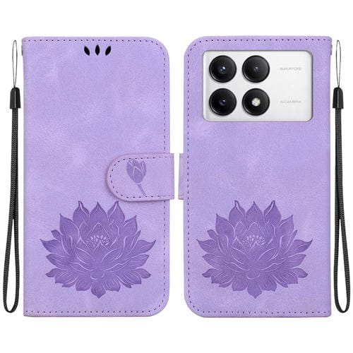 Para Xiaomi Poco F6 Pro Lotus Funda de Cuero En Relieve para Teléfono (Púrpura)