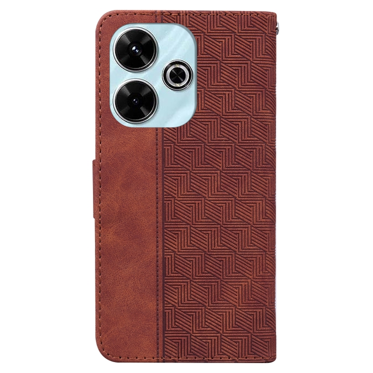 Para Xiaomi Poco M6 4G Funda de Teléfono de Cuero con Relieve Geométrico (Marrón)