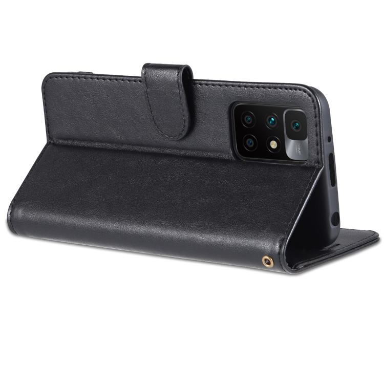 Para Xiaomi Redmi 10 Azns Sheepskin Texture Horizontal Flip Funda de Cuero con Soporte y Tragamonedas y Billetera (Negro)