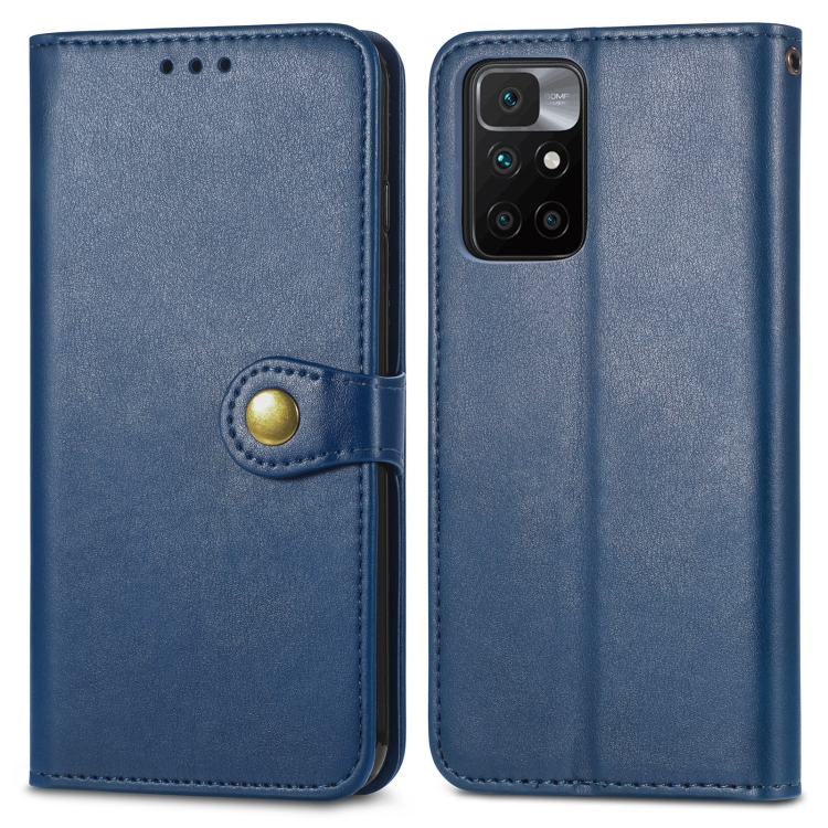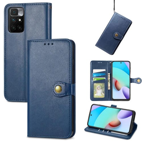 Para Xiaomi Redmi 10 Color de Color Sólido Hebilla de Cuero Funda Teléfono con Lanyard & Photo Frame & Tarjeta Slot & Wallet & Stand Function (Azul)