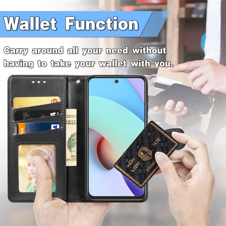 Para Xiaomi Redmi 10 Color de Cuero Sólido con Hebilla de Cuero con Lanyard & Foto Frame & Tarjeta Slot & Walket & Stand Function (Negro)