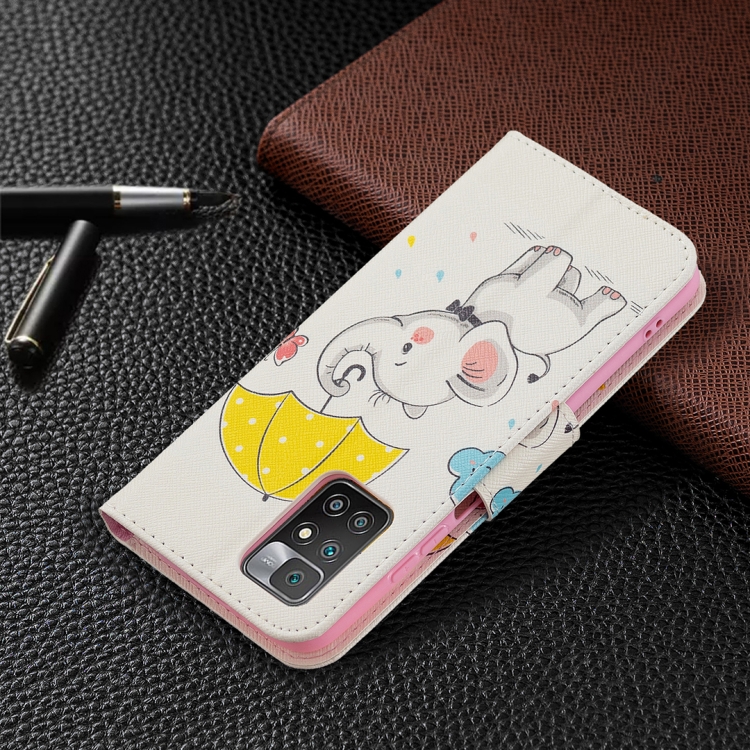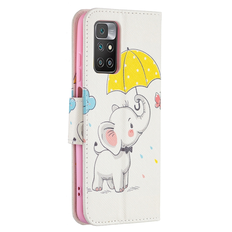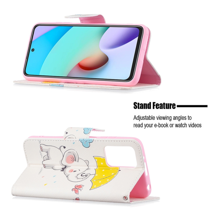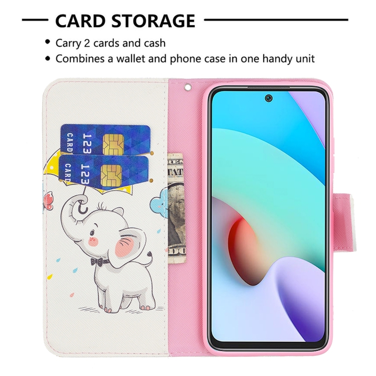 Para Xiaomi Redmi 10 Coloreado Dibujo Patrón Horizontal Funda de Cuero con Soporte y Tragamonedas y Billetera (Elefante para guas)