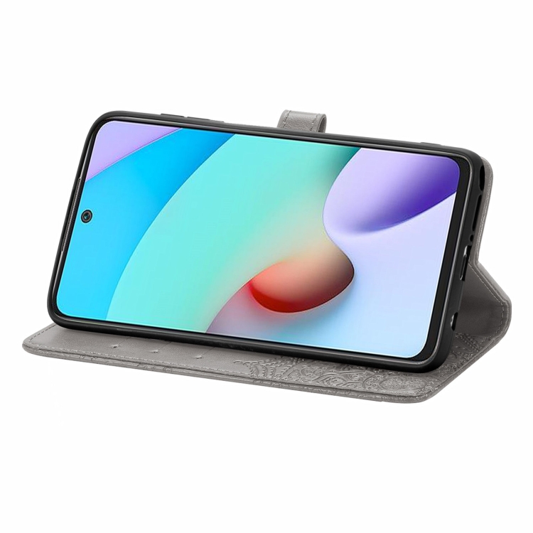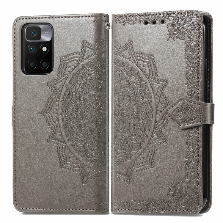 Para Xiaomi Redmi 10 Mandala Patrón de Estampado En Relieve Caja de Cuero con Soporte y Ranuras para Tarjetas y Billetera y Cordón (Gris)