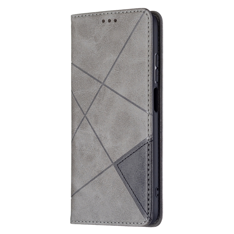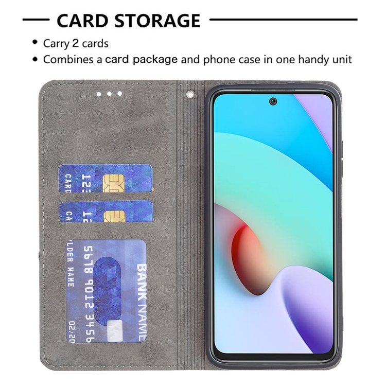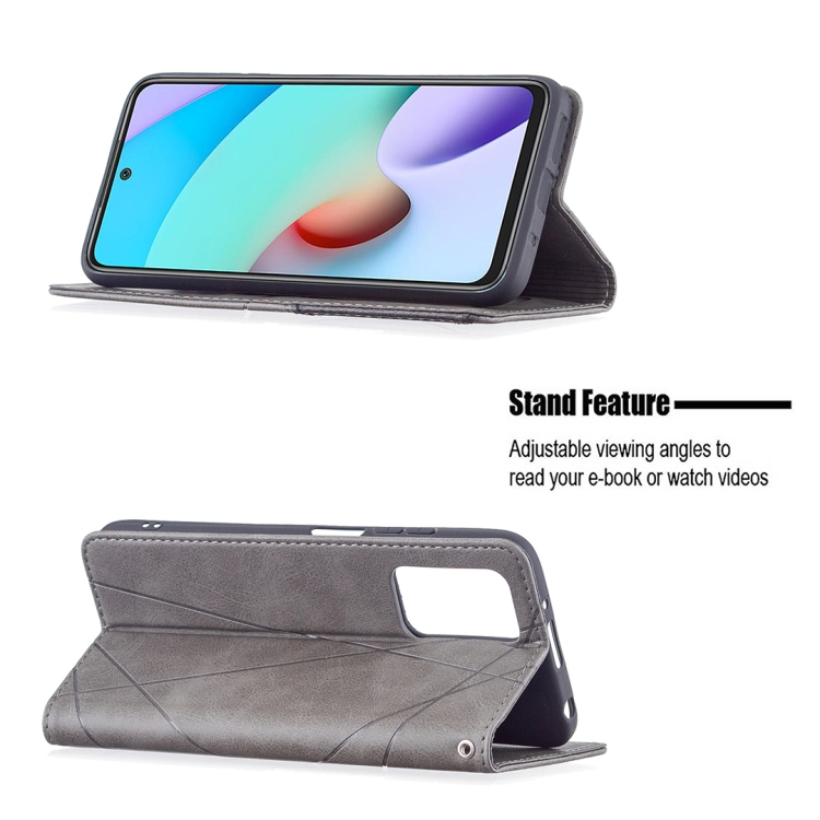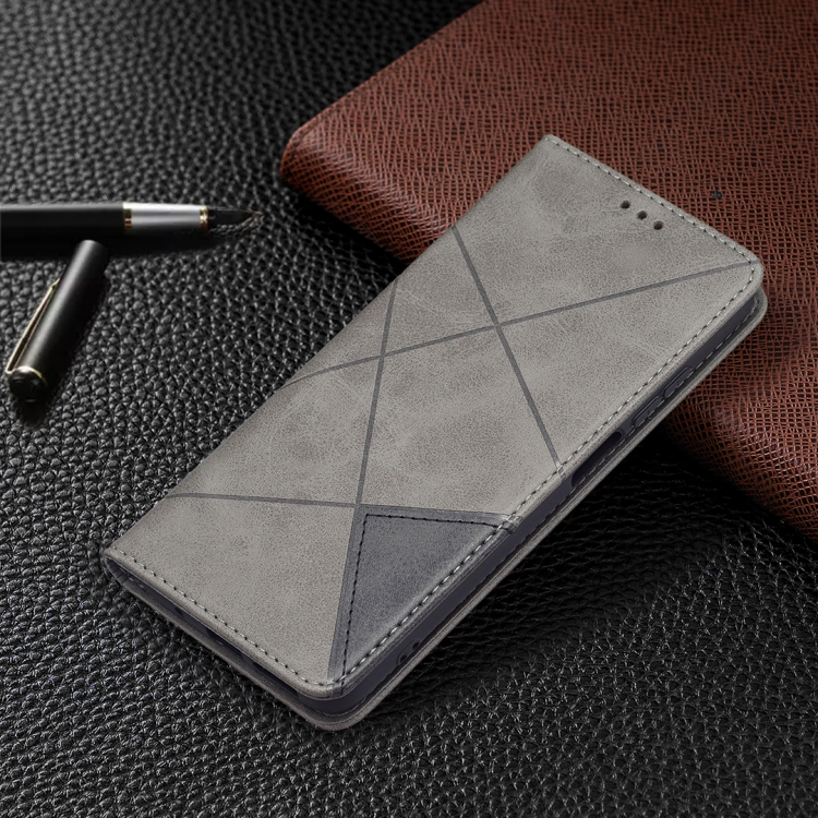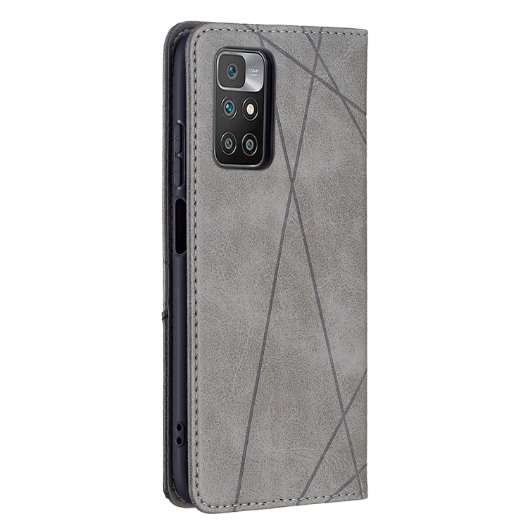 Para Xiaomi Redmi 10 Rhombus Texture Horizontal Flip Funda Magnética con Soporte y Ranuras para Tarjetas (Gris)