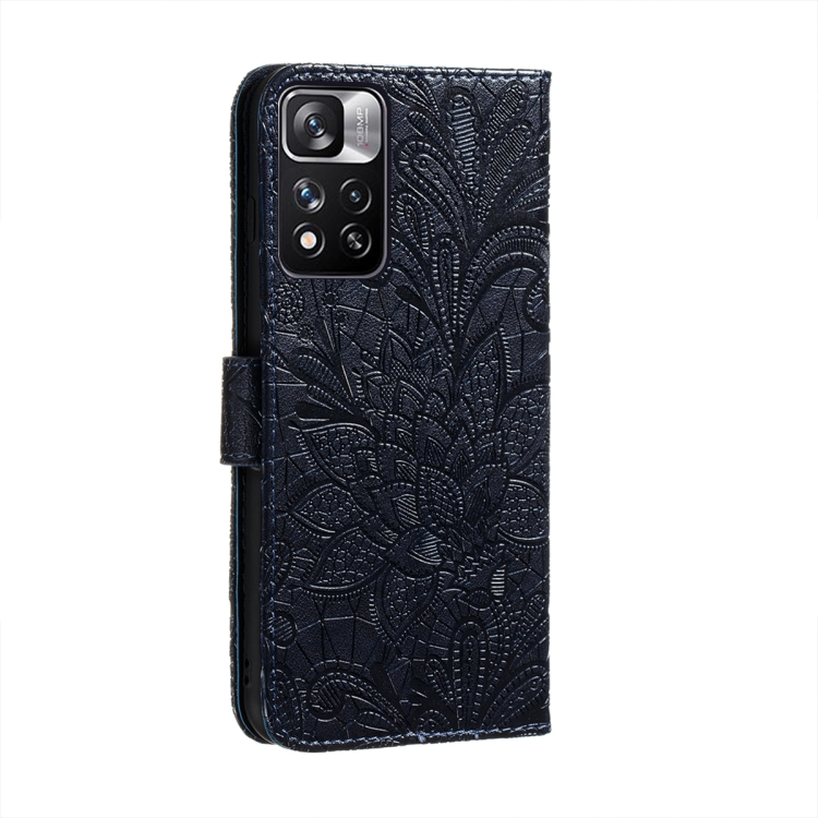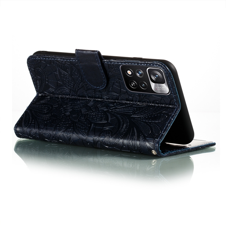 Para Xiaomi Redmi Note 11 Pro Encace Flower Flower Funda Telefónica con Soporte y Ranuras para Tarjetas y Marco de Fotografía (Azul Oscuro)