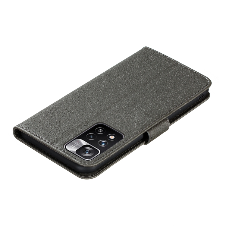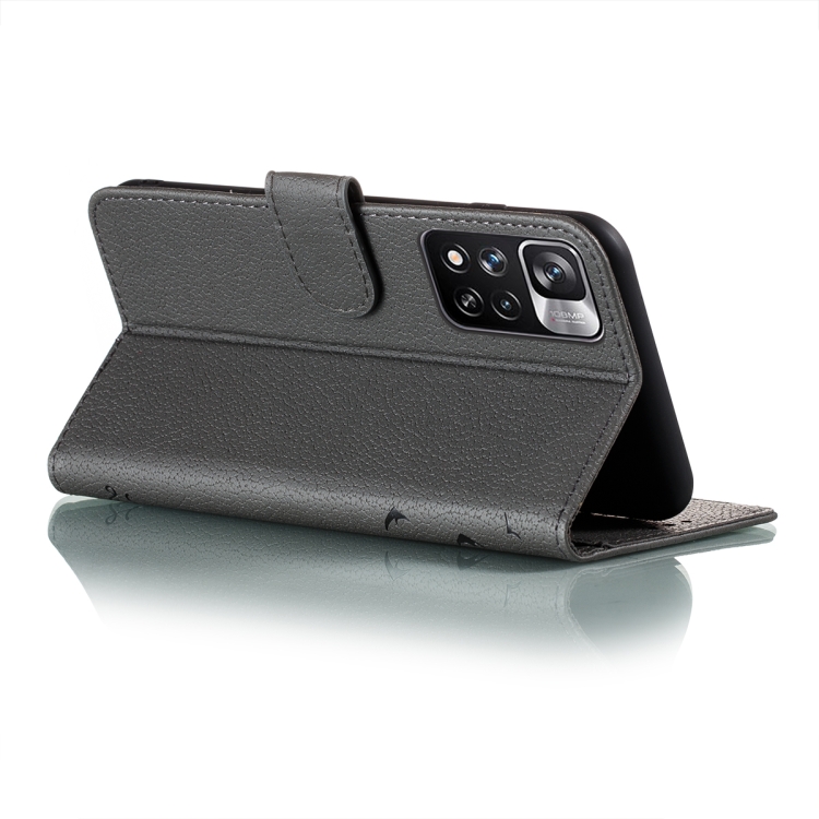 Para Xiaomi Redmi Note 11 Pro Patrón de Plumas Litchi Texture Telegle Teléfono de Cuero con Soporte y Tragamonedas y Billetera (Gris)